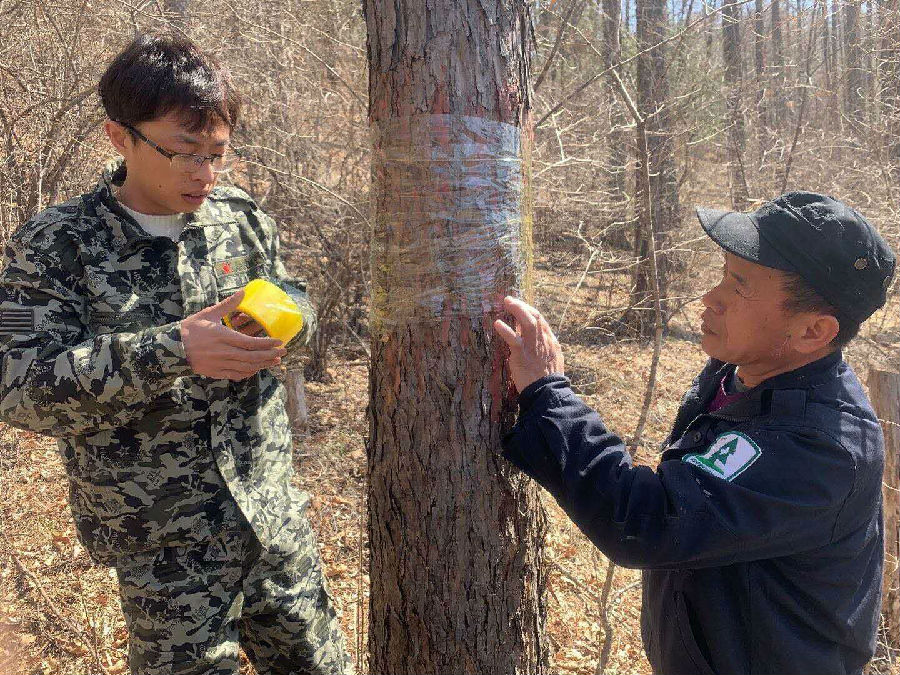 從3月20日—4月份,在全公司轄區范圍內開展了松毛蟲調查標準地設置工作,公司森防站要求各林場,嚴格按照落葉松毛蟲調查監測標準地設置要求,采用阻隔法,用寬度為15cm的塑料膠帶閉合環,阻隔松毛蟲幼蟲,每天對阻隔害蟲的數量進行數據統計,能夠準確的掌握發生區域、面積和發生程度。